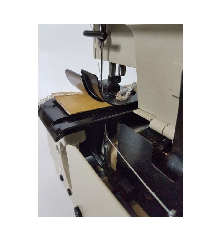 Sewing machine makes a single, reinforced (2-thread) stitch.