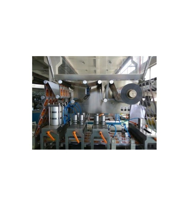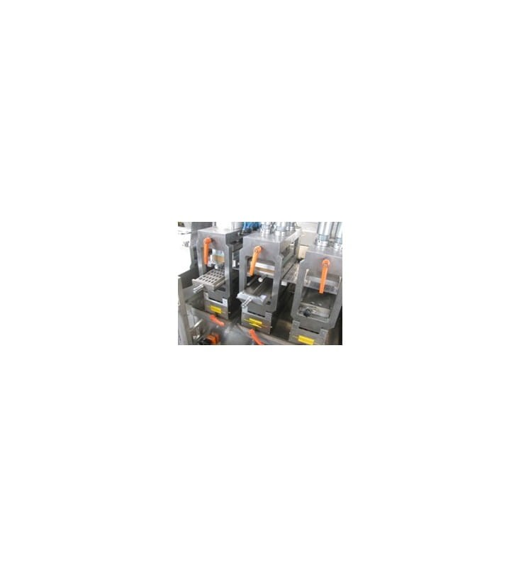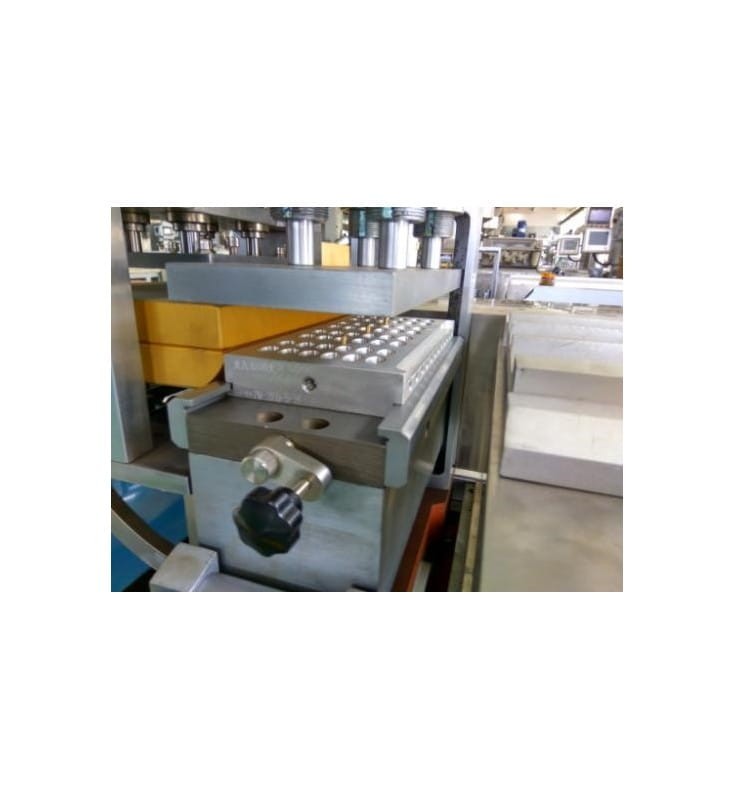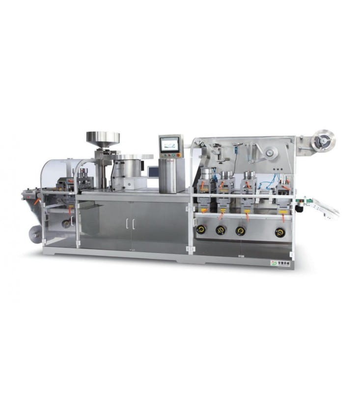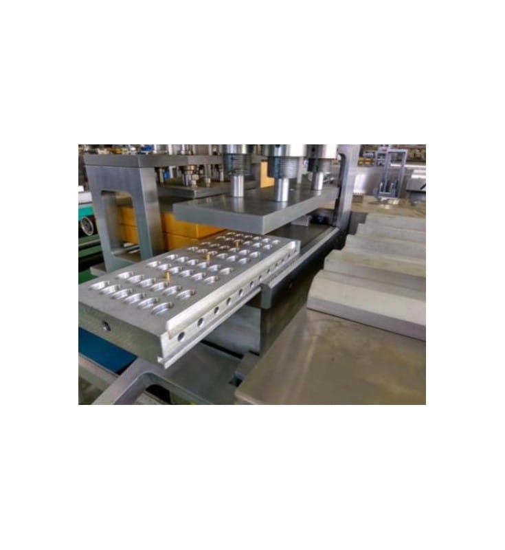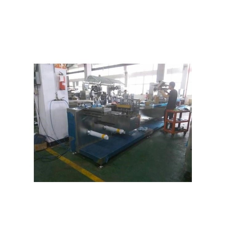 Maszyna wyposażona w formę do tworzenia góry i dołu blistra, do zgrzewania góry i dołu, formę do wytłaczania, do wykrwania i podającą szynę aluminiową.