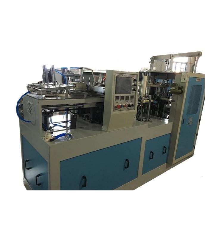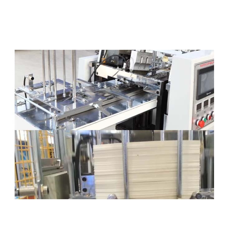 The machine collapses and seals the wall of the cup, wraps the upper and lower edge of the cup, cuts and warms the bottom and finished cups.