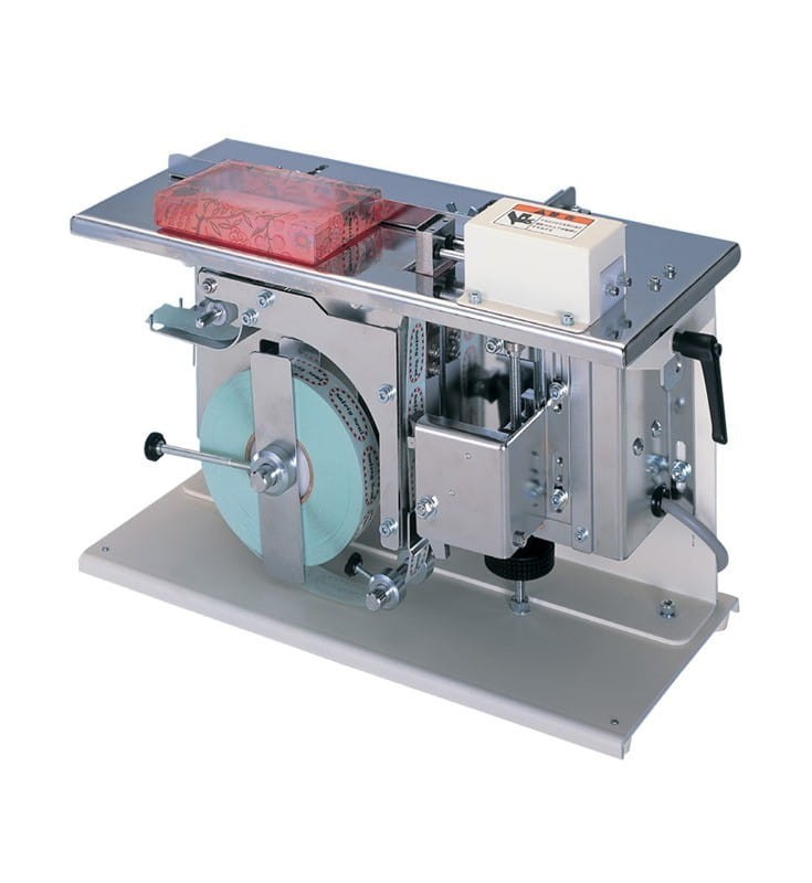 The box should be pressed with the edge to the mold on the right side of the device where the sticker applicator is located.