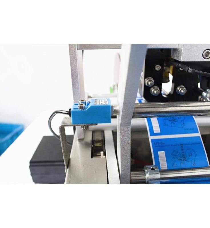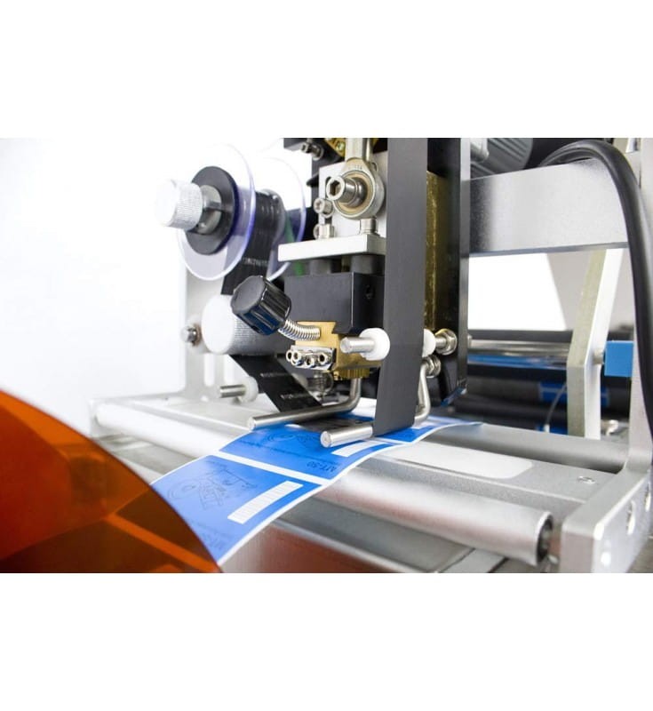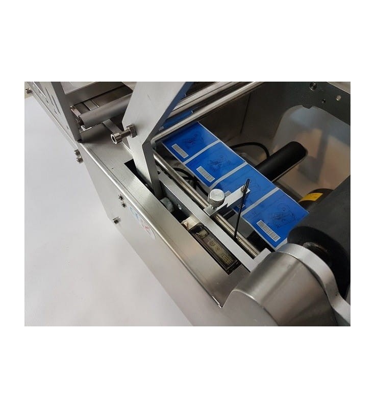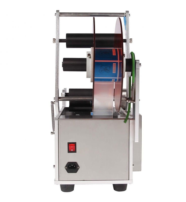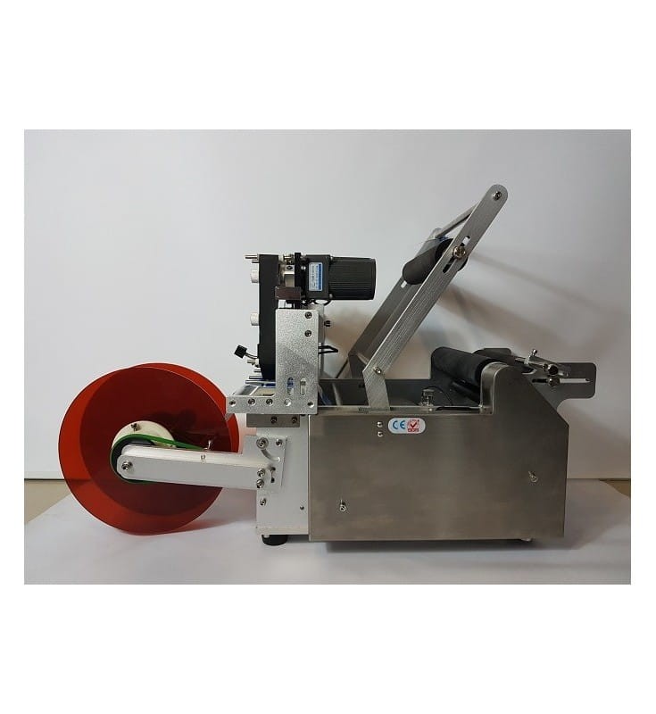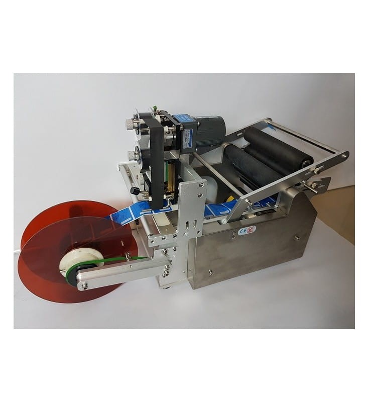 An easy to use labeling machine designed for sticking labels to round bottles.