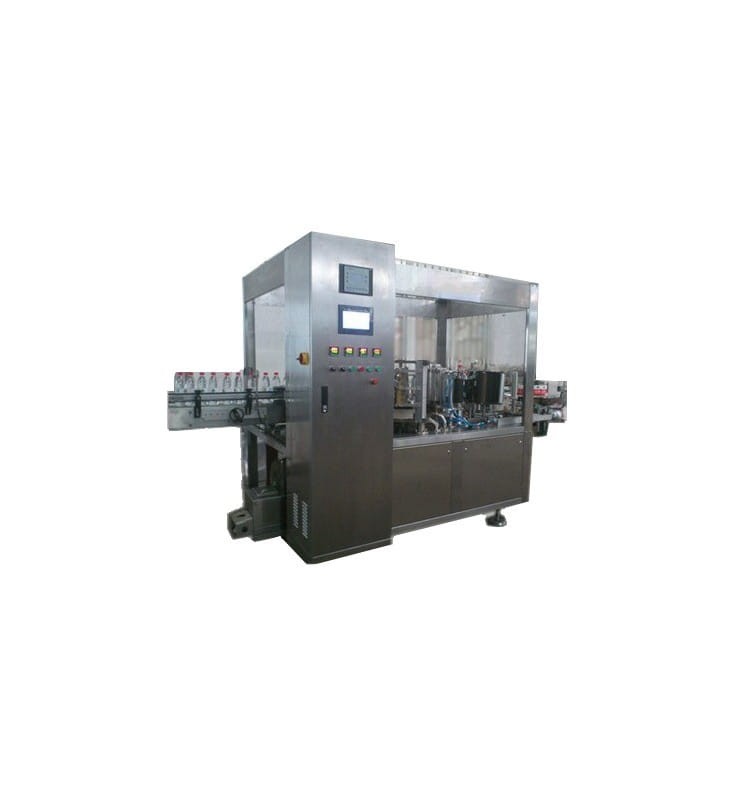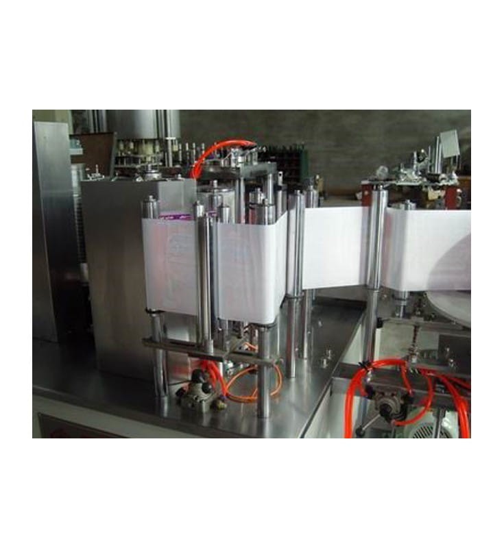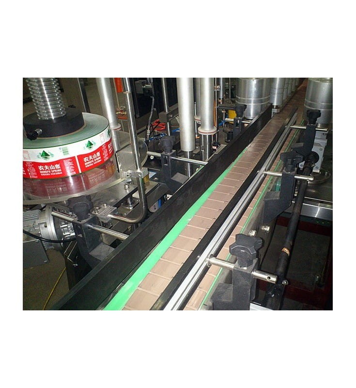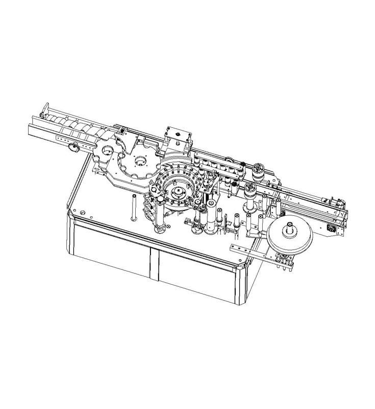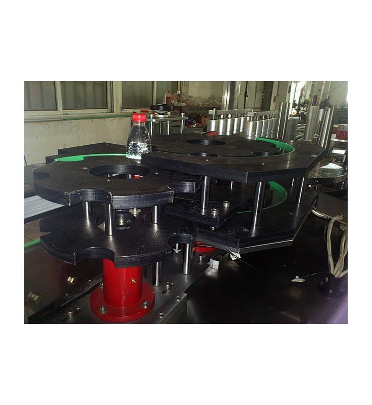 It supports plastic, glass and metal containers with a round cross-section, of different sizes, each diameter requiring a separate holding mold.