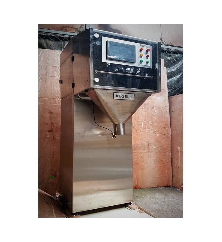 Urządzenie składa się z leja, podajnika wibracyjnego, jednostki ważącej i mechanizmu nasypującego.