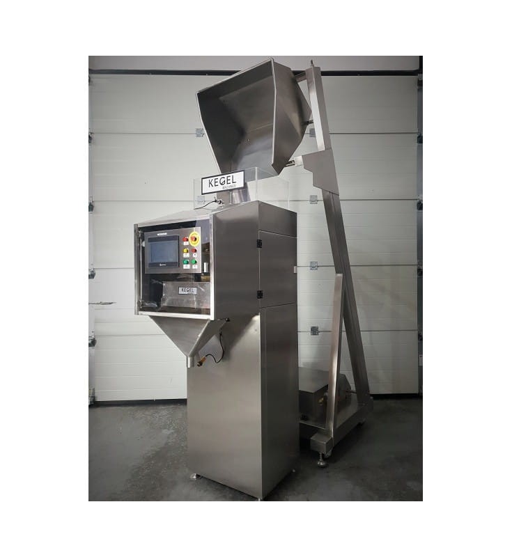Urządzenie składa się z leja, podajnika wibracyjnego, jednostki ważącej i mechanizmu nasypującego.