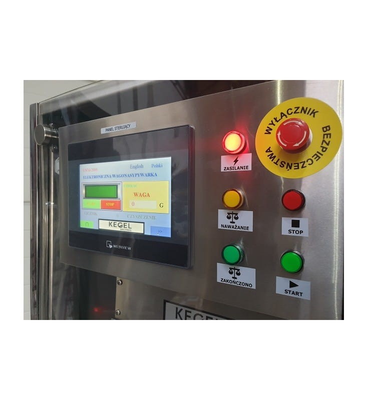 Automatyczna elektroniczna wagonasypywarka jednogłowicowa przeznaczona do dozowania wszelkiego rodzaju sypkich, suchych, nie zbrylających się produktów, np. kawa - mielona, ziarnista, rozpuszczalna, sól, mąka, zboża, przyprawy itp.