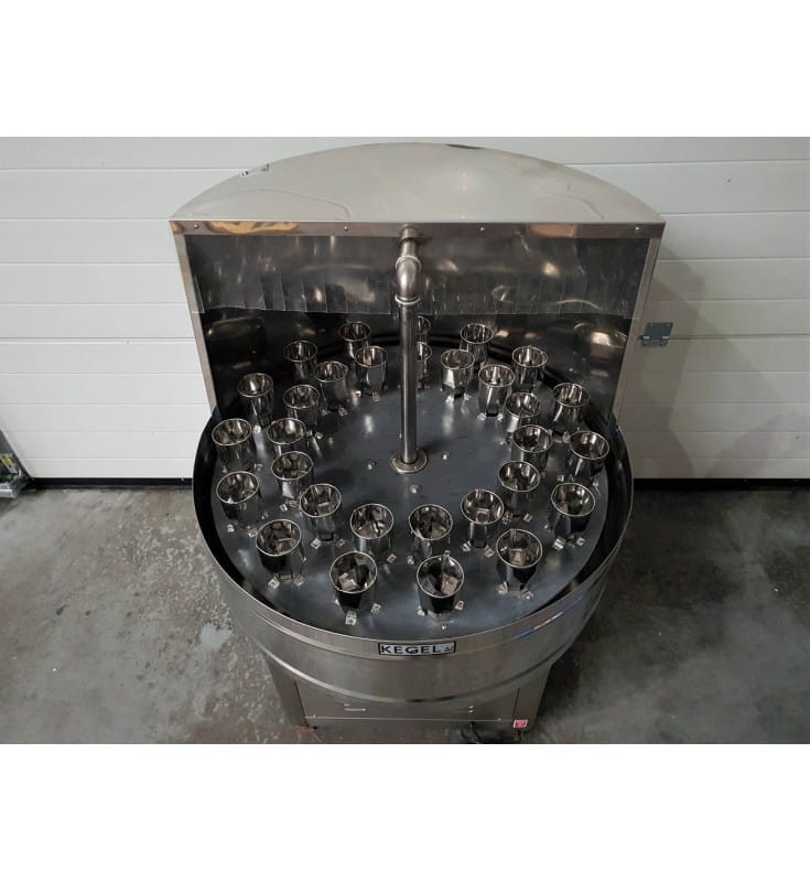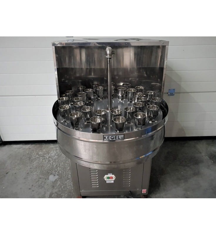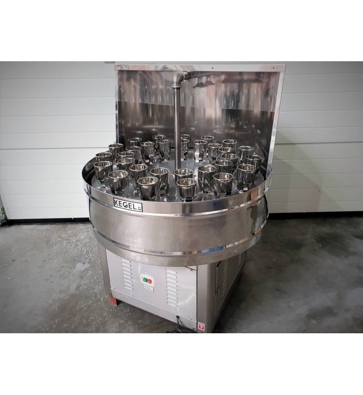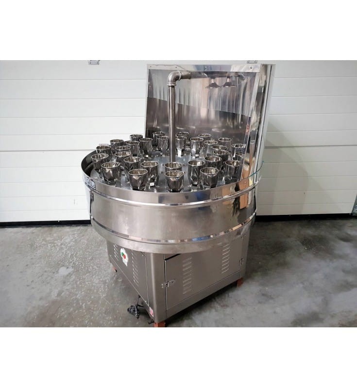 The bottles in the washer are placed by hand. The device is characterized by thorough washing inside and outside the bottle.