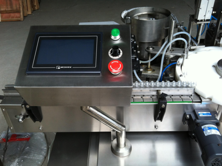 The process includes automatic bottle feeding, peristaltic pump filling, cap placing, and cap tightening. This ensures smooth production without the need for manual intervention. -