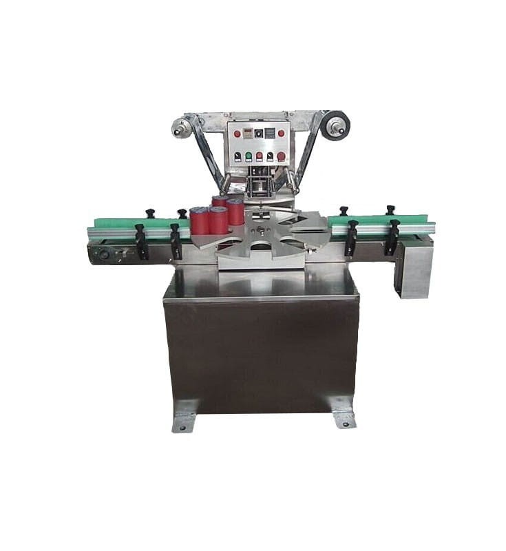 An automatic device designed to be closed with aluminum foil from the role of glass and plastic jars. It has a rotating disc with holes holding individual jars. The blade rotates and places each jar on the head in succession, which warms the foil to its edge and then cuts off the excess. The device is easy to use and trouble-free.