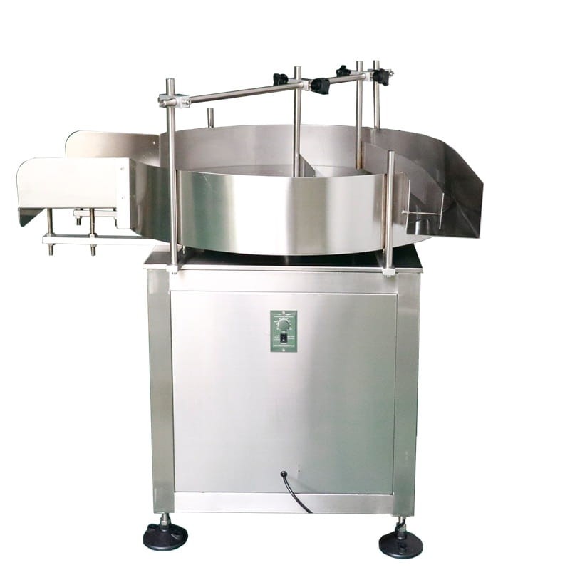 A rotating table feeding the bottles.