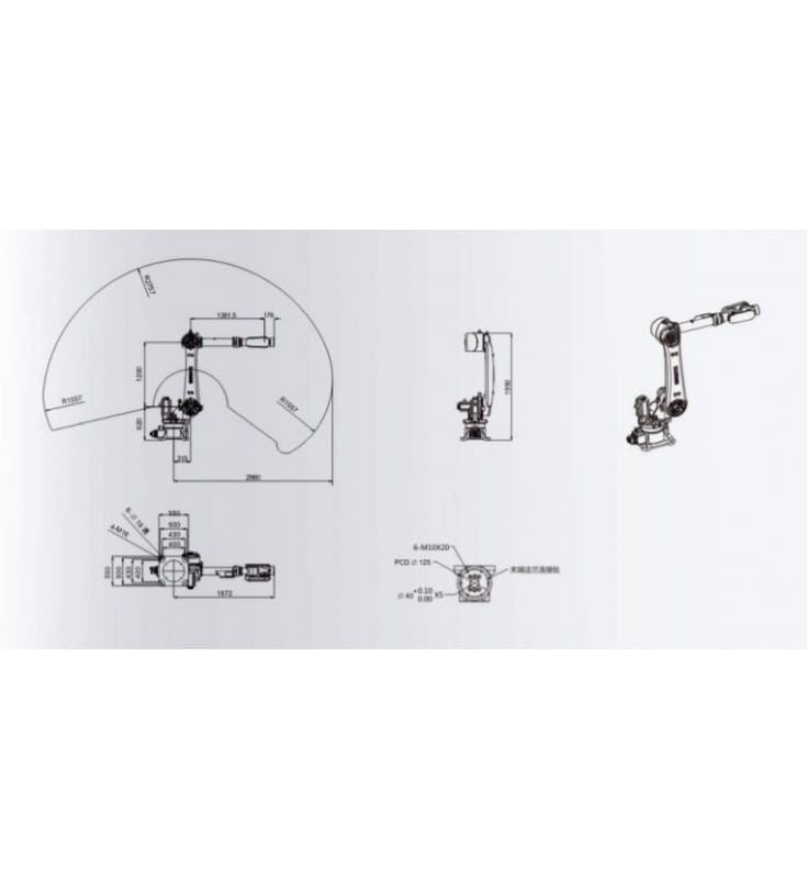 Maximum axis movement 5: 125 degrees
