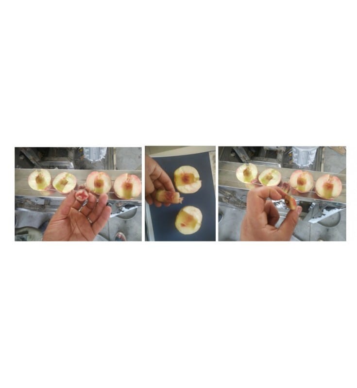 Urządzenie przeznaczone jest do drylowania dużych owoców i przecinania ich na pół, przede wszystkim do brzoskwiń, nektarynek, sliwek.