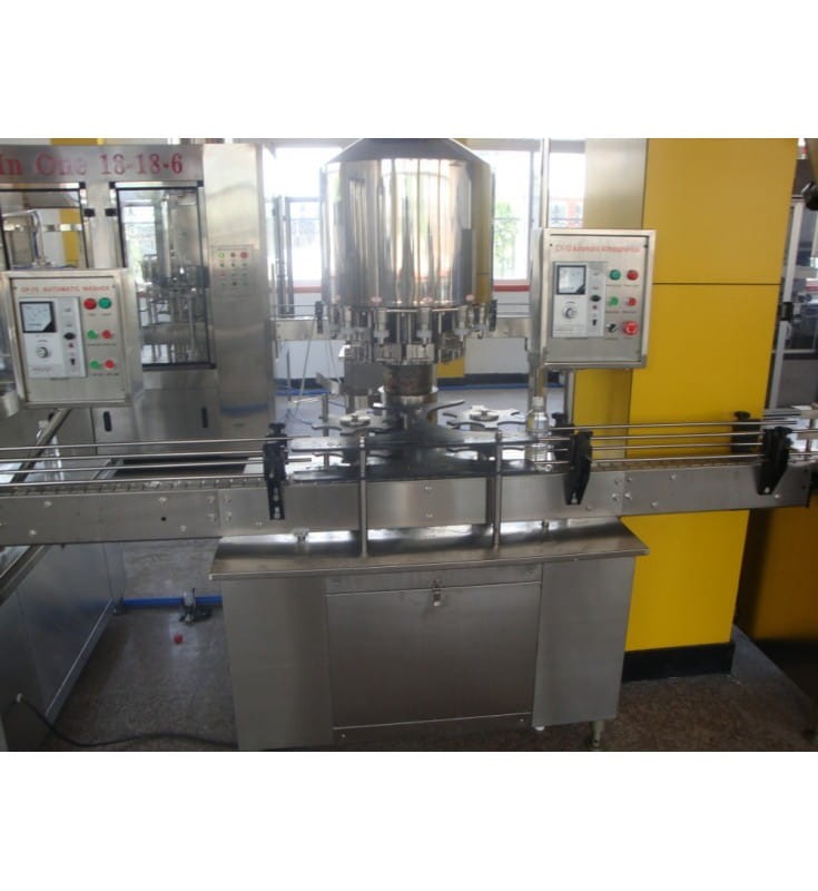 Automatyczna nalewarka przeznaczona do napełniania butelek plastikowych rzadkimi płynami o niskiej pienistości, np. woda mineralna.
