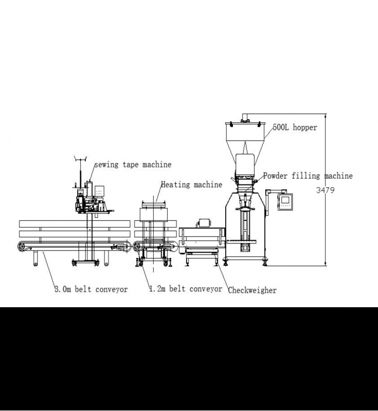 Pół-automatyczna linia zamykająca do proszku przystosowana do worków 25 kg.