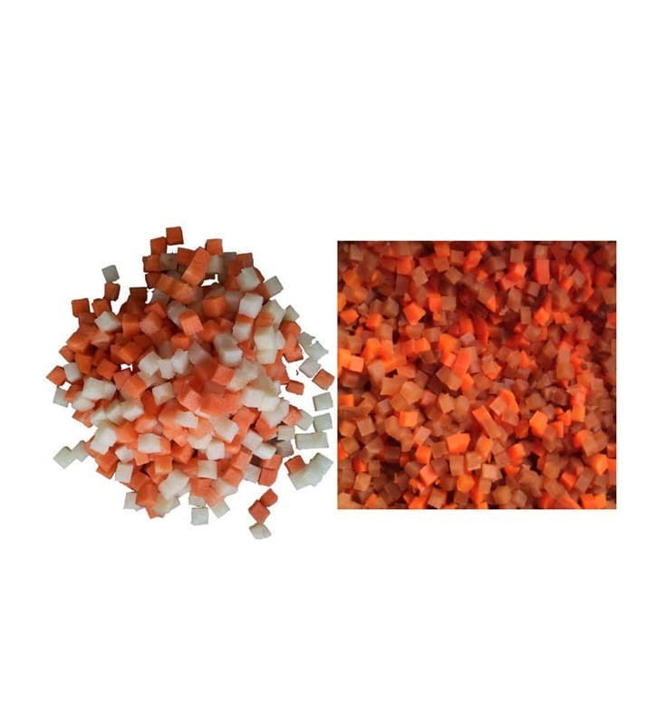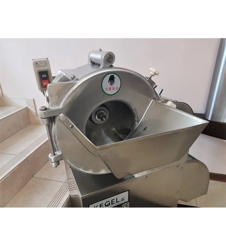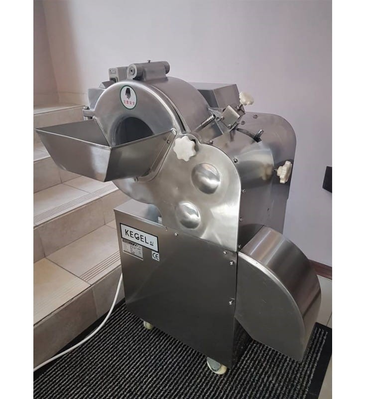 Wysokiej jakości przemysłowa krajalnica przeznaczona do cięcia warzyw w kostkę.