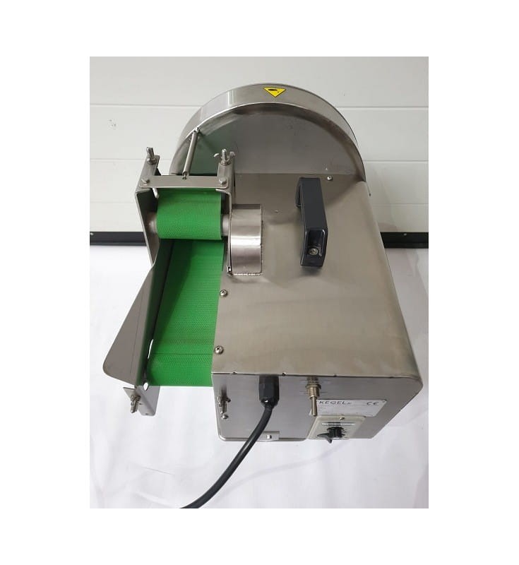 Wysokiej jakości przemysłowa szatkownica-krajalnica przeznaczona do cięcia warzyw takich jak szczypiorek, szalotka, seler, kapusta.