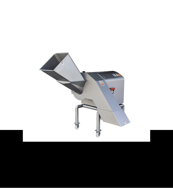 Cube cutting machine designed for cutting vegetables and fruits in the shape of cubes.