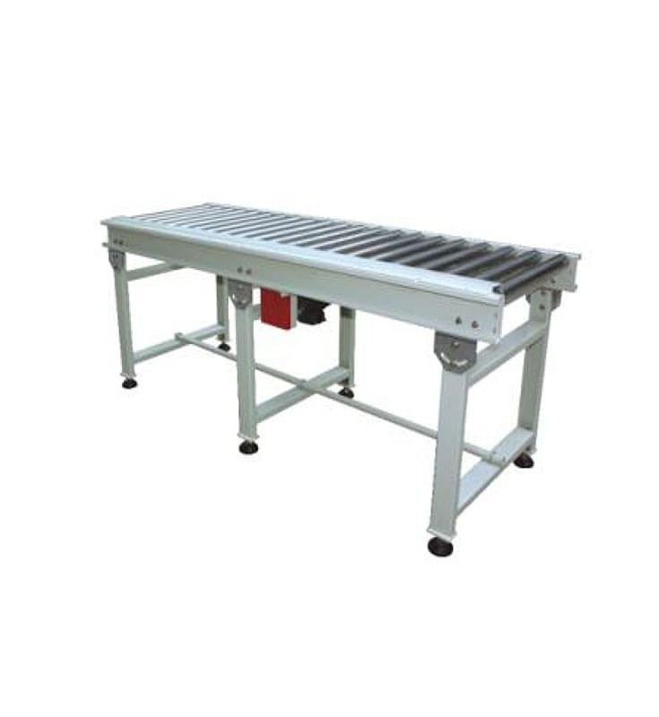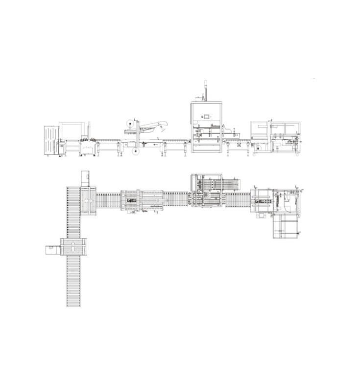 Między poszczególnymi urządzeniami znajdują się transportery rolkowe, w tym dwa z własnym napędem oraz jeden z popychaczem, zmieniającym kierunek ruchu kartonów o 90 stopni.