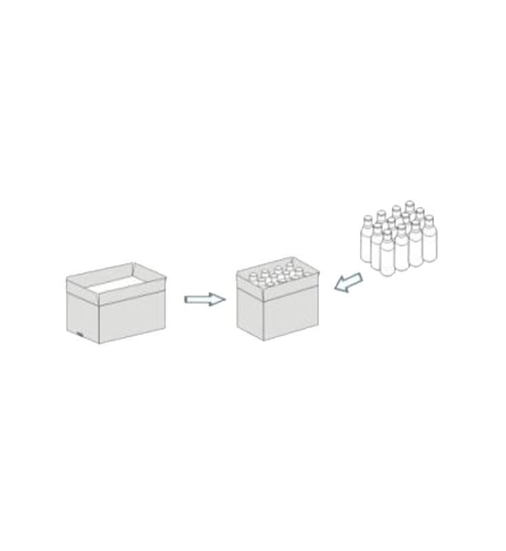 Karton jest składany i zaklejany od spodu, a następnie podawany do automatu pakującego.