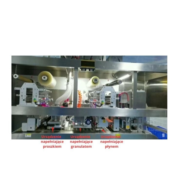 Maszyna zainstalowana z trzema oddzielnymi systemami podawania i napełniania: