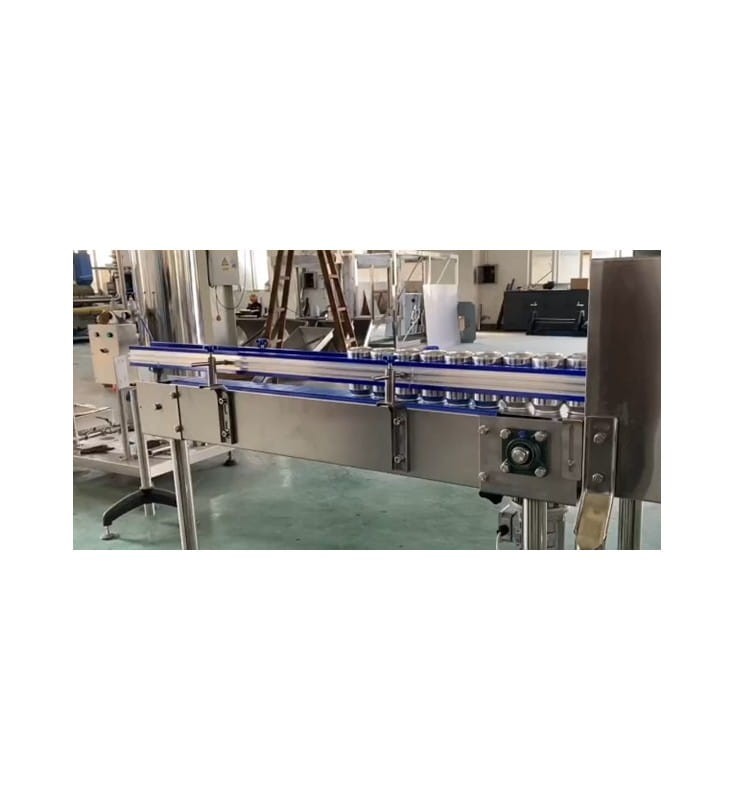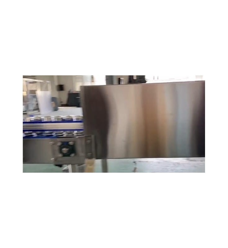 W skład linii wchodzi stół podawczy, myjka, nalewarka, zamykarka do puszek, maszyna obracająca puszki, drukarka atramentowa, etykieciarka oraz taśmociąg z silnikiem, stół odbiorczy.