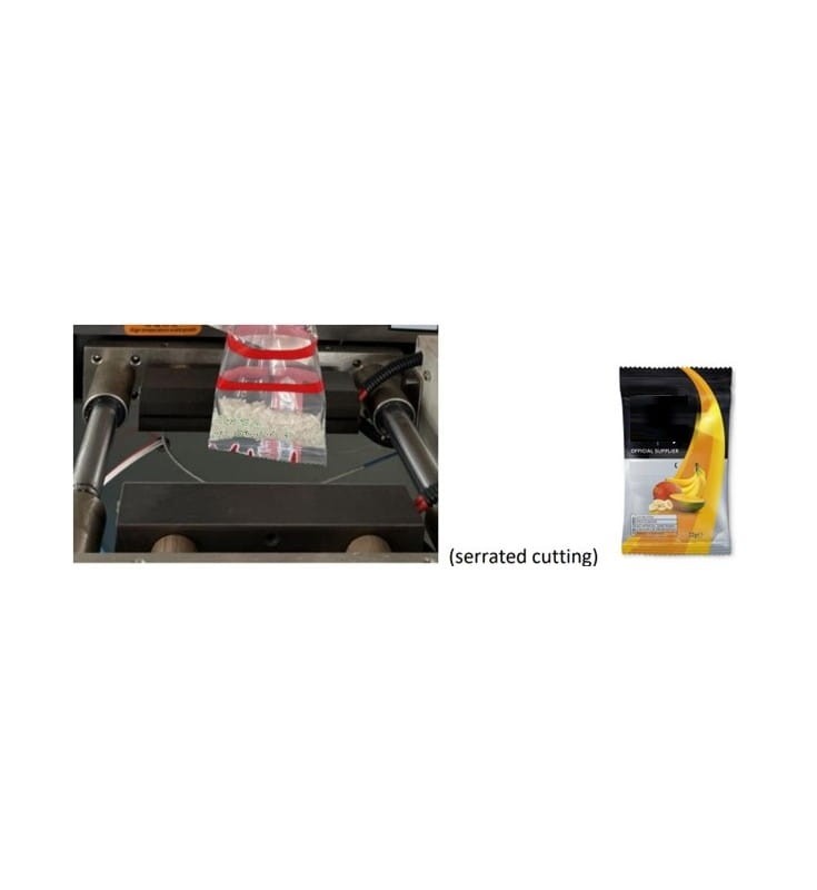 Saszetkarka wyposażona jest w fotokomórkę i umożliwia tworzenie saszetek z folii gładkiej lub zadrukowanej.
