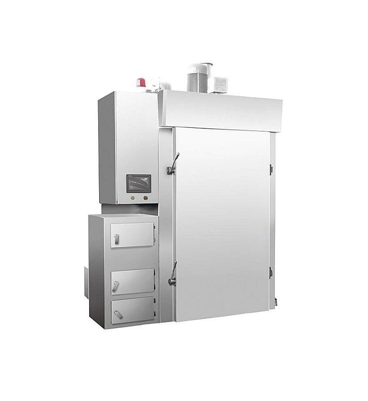 A professional, industrial smokehouse made entirely of high quality stainless steel.