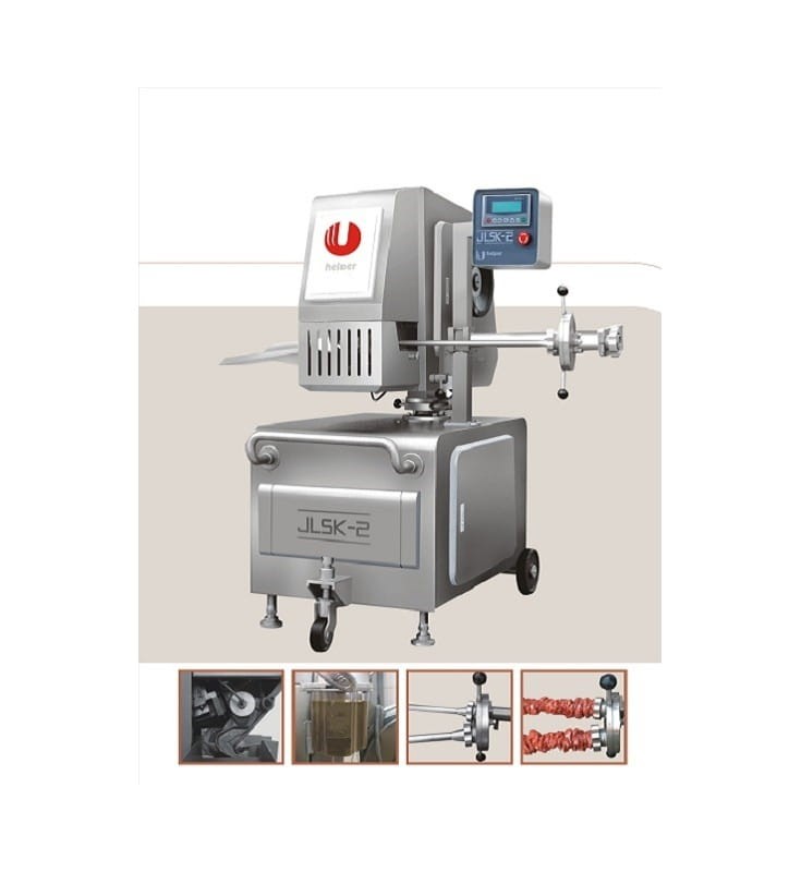 Automatic double clipper JCK-130 is connected mechanically and electrically to the any vacuum stuffer or pneumatic stuffer.