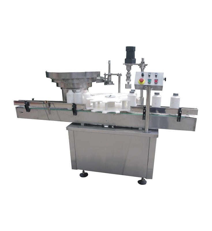 Urządzenie posiada własny taśmociąg, butelki doprowadzane są pod głowicę, tam zamykane, a następnie podawane dalej.