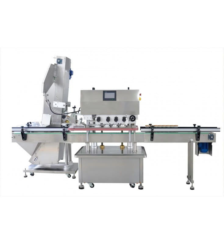 - Precyzyjna i szybka praca: Dzięki 8-kółkowemu mechanizmowi zakręcania maszyna oferuje wyjątkową szybkość oraz minimalizuje ryzyko uszkodzenia zakrętek antykradzieżowych i butelek.