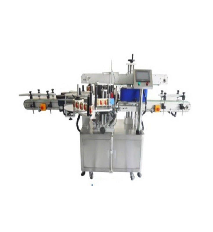 Okleja jednocześnie przód i tył butelki (etykieta i kontretykieta).