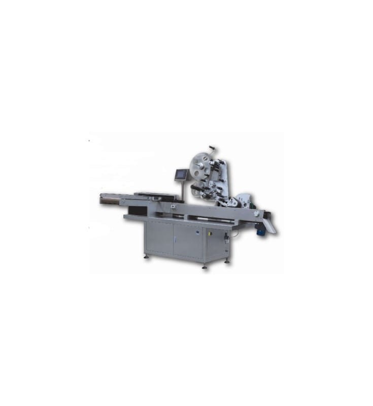 Profesjonalne, przemysłowe urządzenie przeznaczone do automatycznego oklejania butelek, ułożonych poziomo, etykietami z rolki.