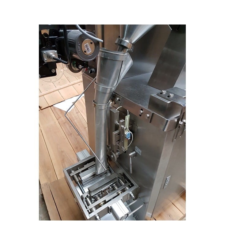 The sachet machine seals the sachet from three sides - transversely at the top, bottom and longitudinally (the seal forms at the back, in the middle) - pillow type bag.