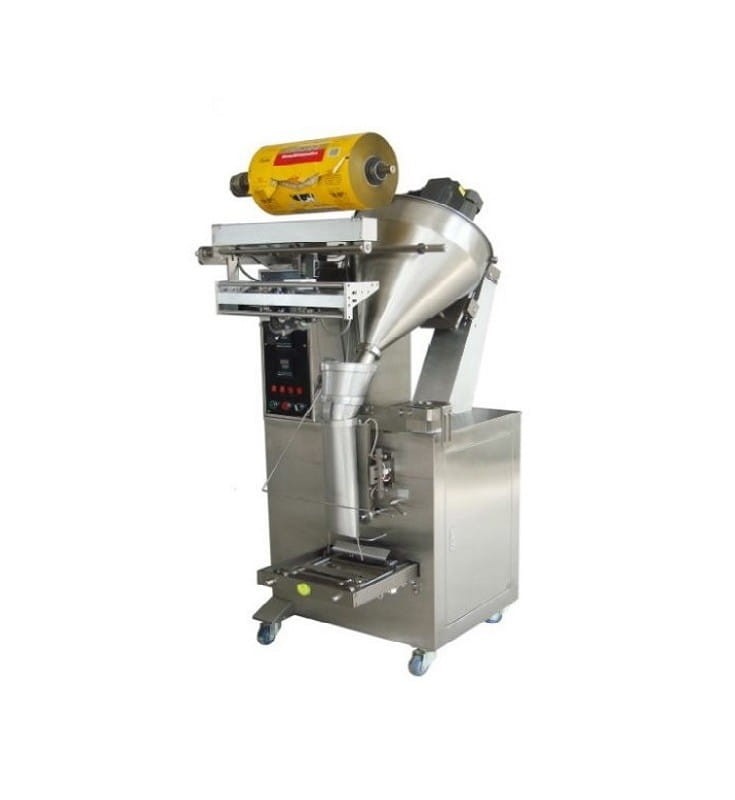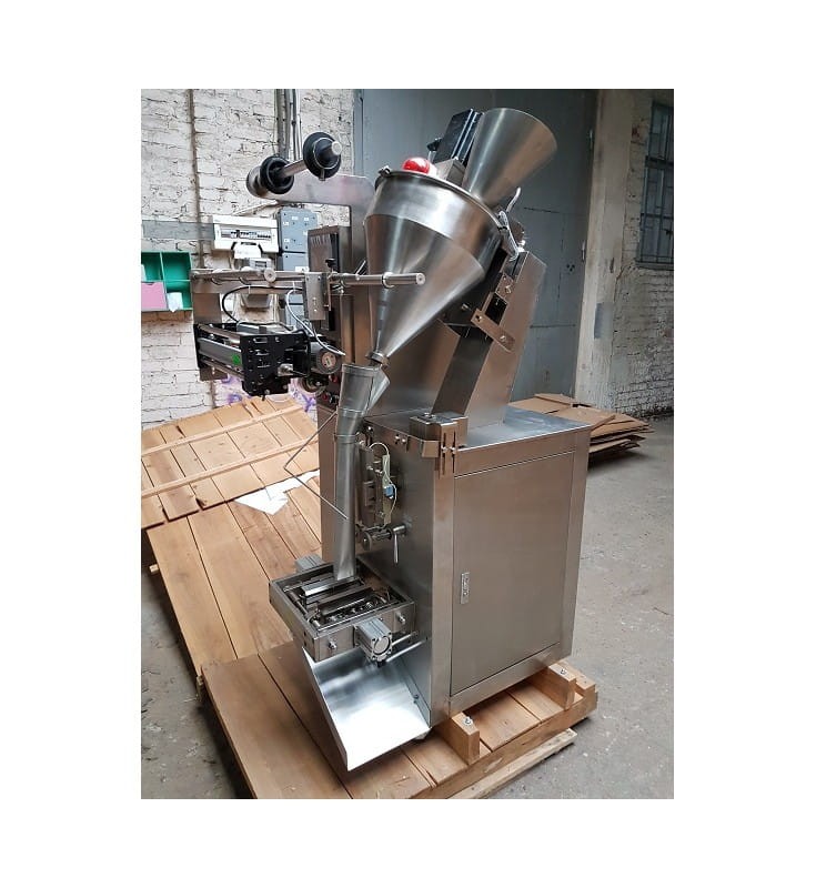 The sachet machine seals the sachet from three sides - transversely at the top, bottom and longitudinally (the seal forms at the back, in the middle) - pillow type bag.