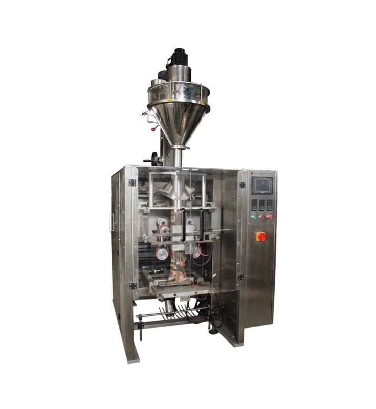 A vertical packing machine designed for packing things, powdery, powder, flour, spices. The device is equipped with a screw feeder dispensing powder, a packaging machine and a conveyor belt for discharging finished bags. The devices are made of stainless steel using high quality components.