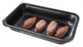 Formy są wymienne, co umożliwia obsługę różnych rozmiarów tacek na jednej maszynie.
