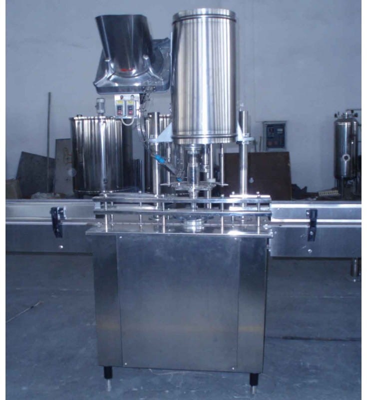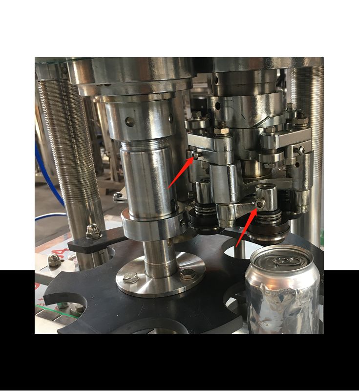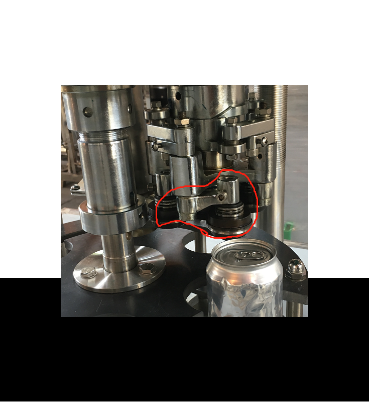 Urządzenie posiada własny taśmociąg, puszki doprowadzane są pod głowicę, tam zamykane, a następnie podawane dalej.