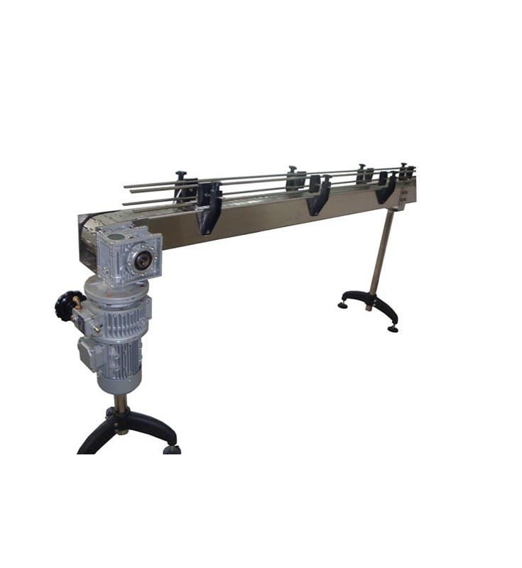 Posiada regulowane ograniczniki zapewniające stabilny przesuw produktów, szczególnie butelek.