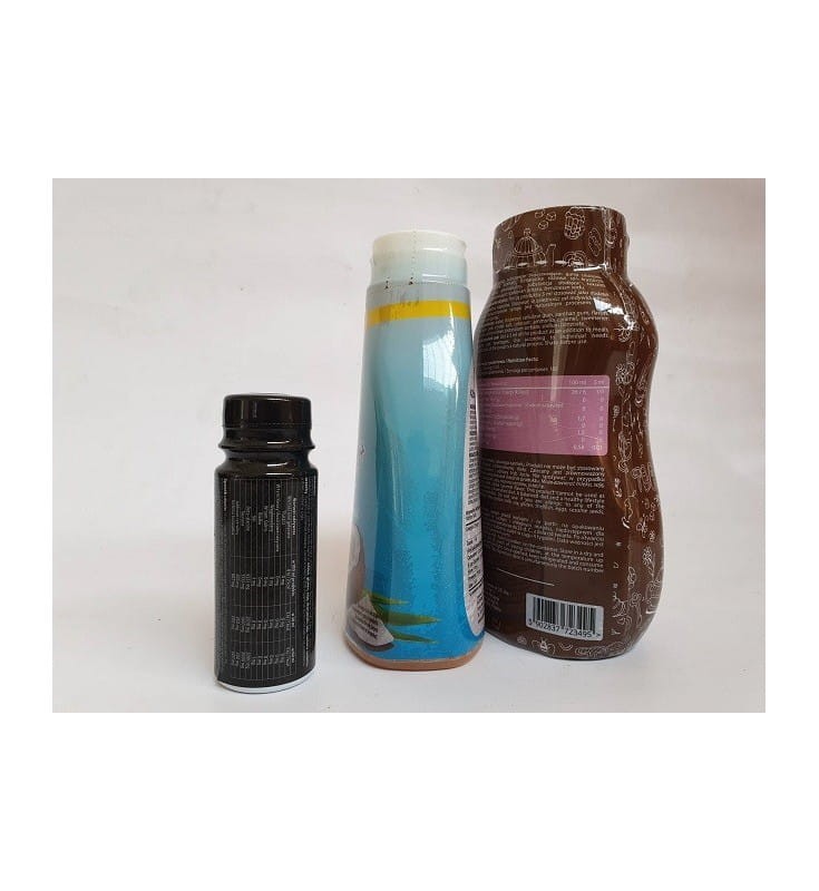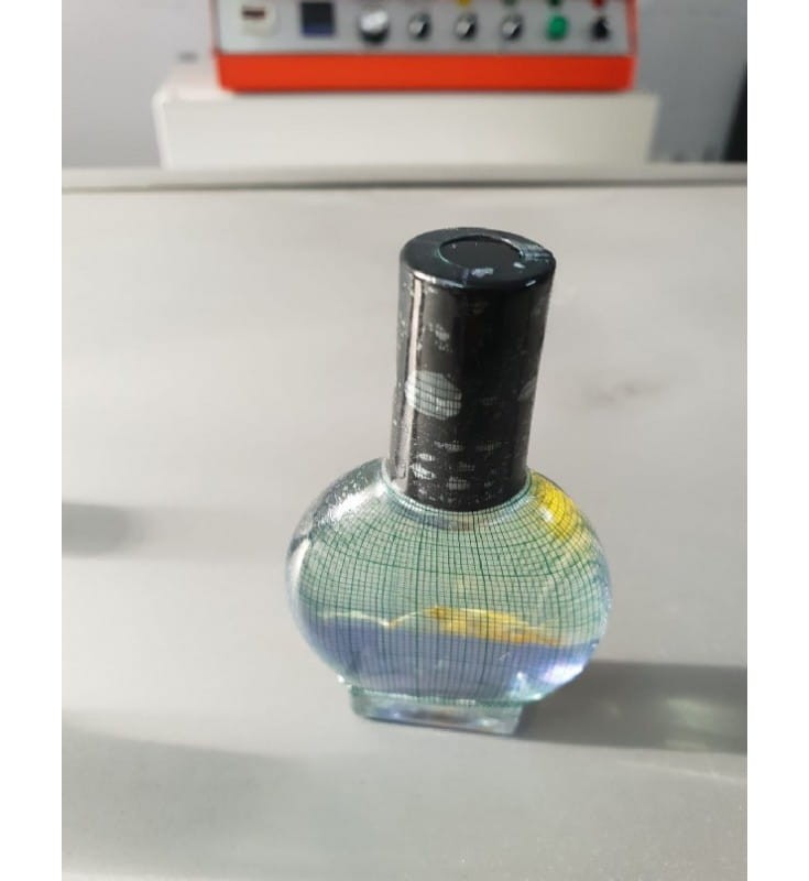 Jeśli folia jest płaska jak dno butelki lub przekracza dno butelki, dolnej folii nie można skurczyć.