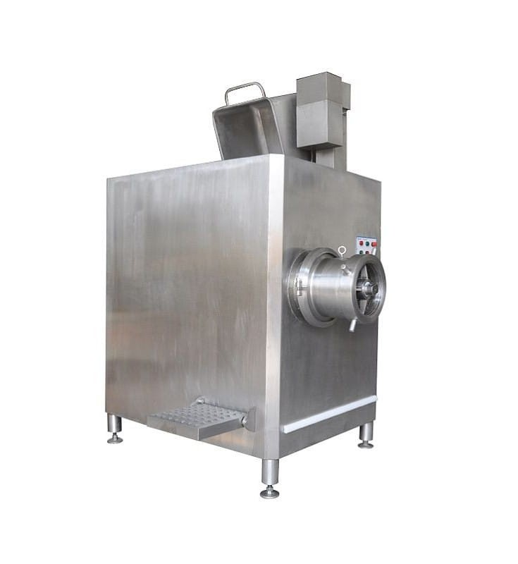 Profesjonalna, przemysłowa maszyna przeznaczona do mielenia mięsa.