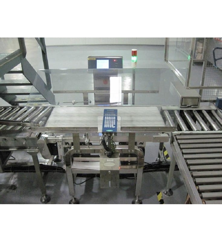 Profesjonalna kontrolna waga przemysłowa o wysokiej dokładności (+/- 0,5-1,0 g) w zestawie z etykieciarką do etykiet w postaci naklejek.