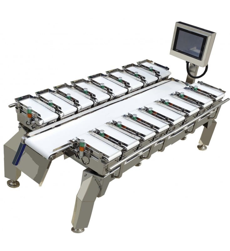 Profesjonalna kontrolna waga przemysłowa służąca do odmierzania dokładnej wagi produktu przed spakowaniem.