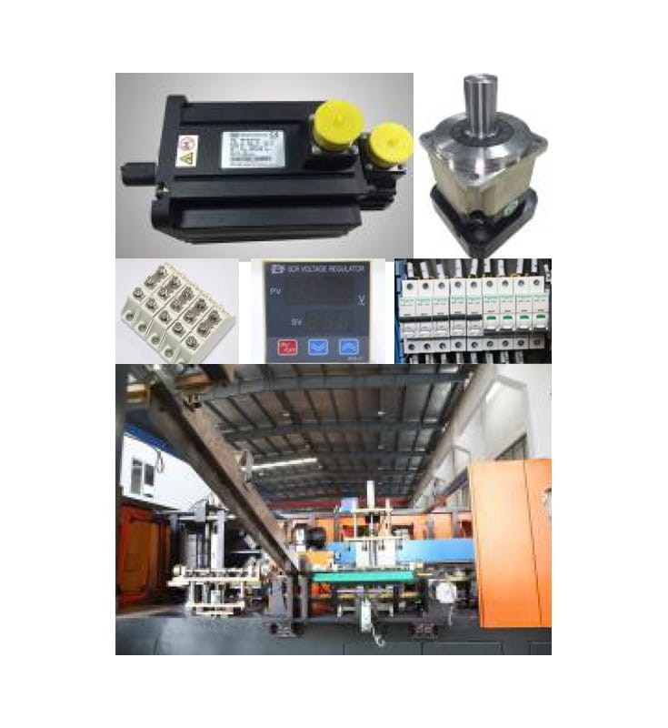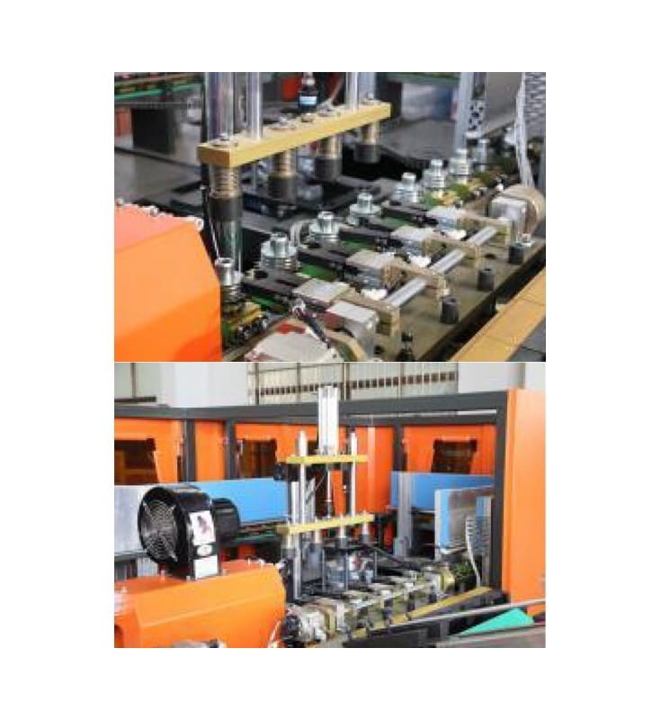 W skład urządzenia wchodzi maszyna rozdmuchowa do preform o 4 gniazdach wydmuchowych, podajnik preform, 2 kompresory - wysokiego i niskiego ciśnienia, zbiornik powietrza, system chłodzenia oraz 3 moduły do produkcji butelek o pojemności 500, 750 i 1000 ml.