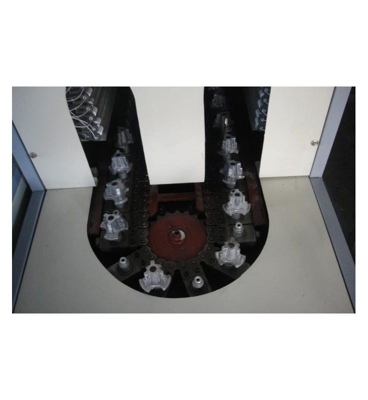 Głównymi elementami są maszyna rozgrzewająca preformy oraz maszyna rozdmuchowa.