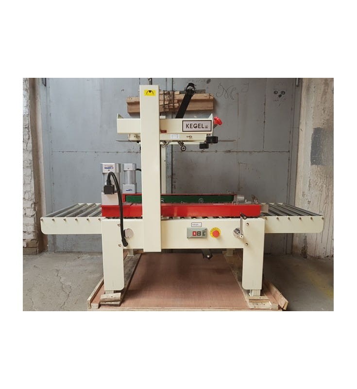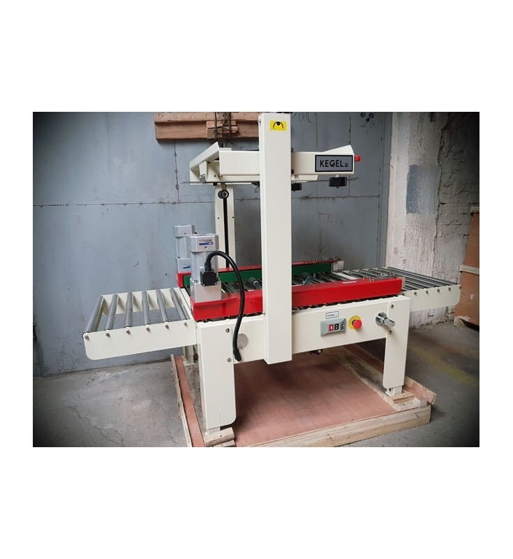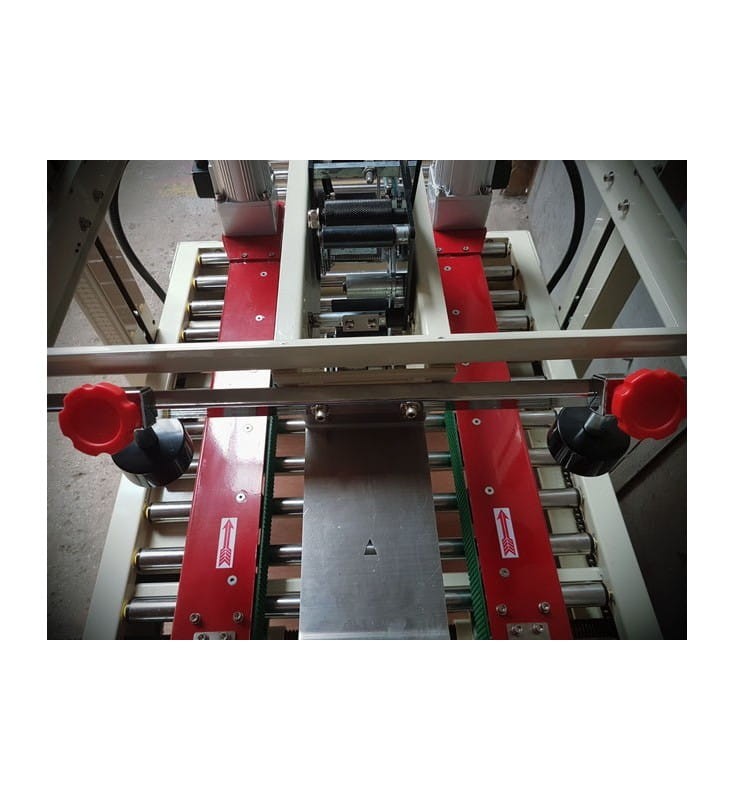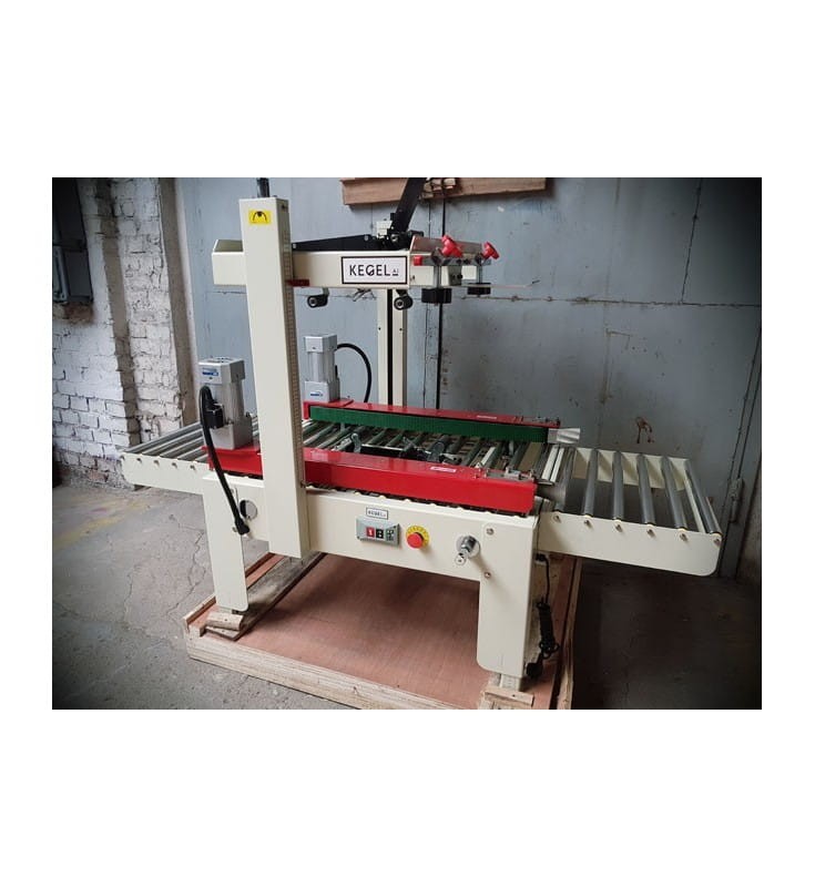 Półautomatyczne urządzenie służące do zaklejania kartonów jednocześnie od góry i od spodu.