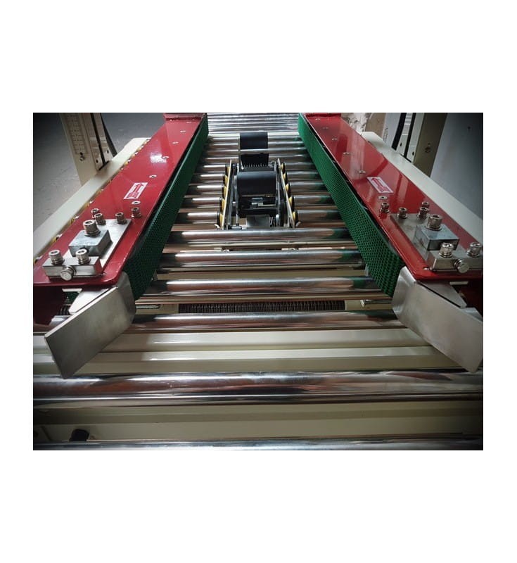 Posiada przesuw boczny dzięki czemu praca jest jeszcze bardziej stabilna, a kartony przemieszczają się w trakcie zaklejania równomiernie.