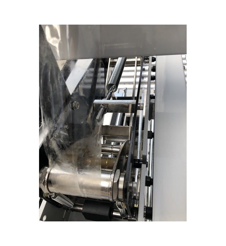Posiada przesuw górny i dolny dzięki czemu praca jest stabilna, a kartony przemieszczają się w trakcie zaklejania równomiernie.
