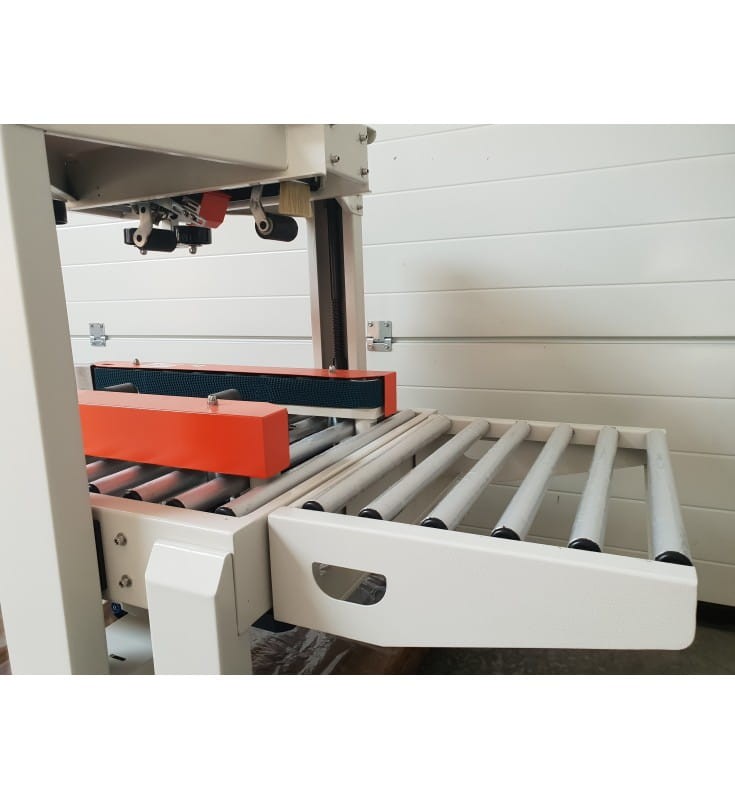 Posiada przesuw boczny dzięki czemu praca jest jeszcze bardziej stabilna, a kartony przemieszczają się w trakcie zaklejania równomiernie.