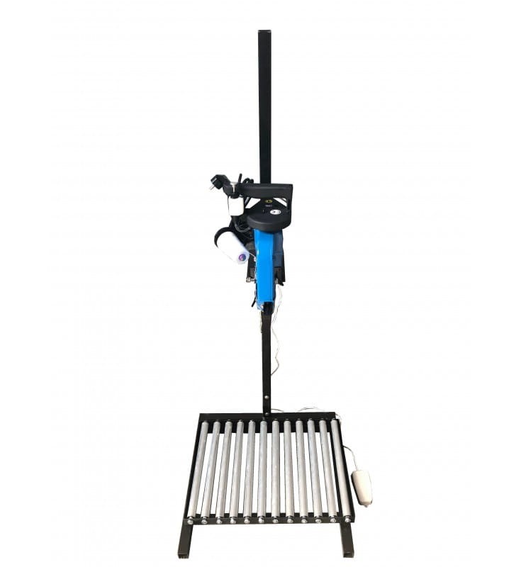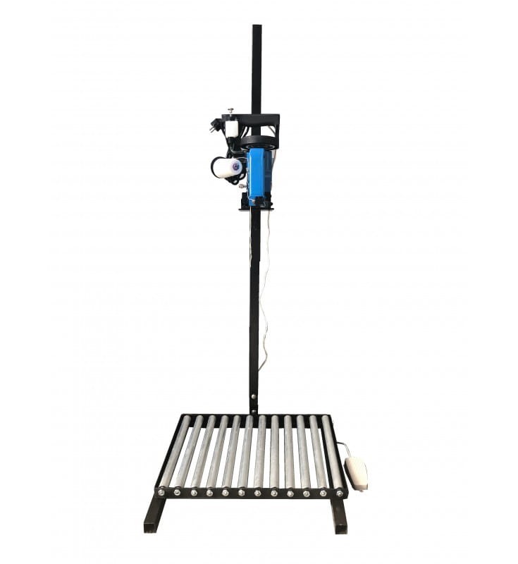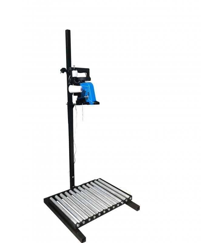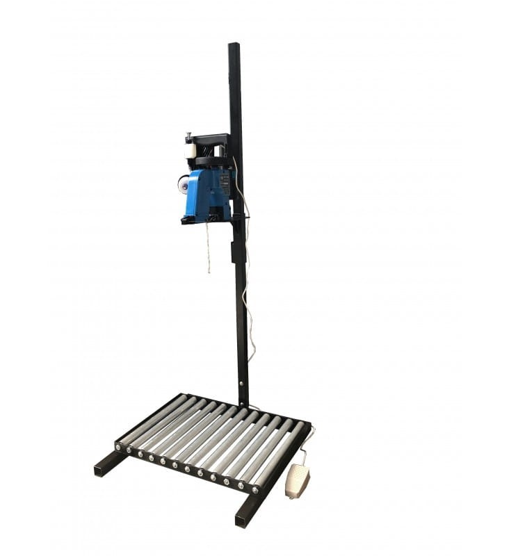Model N300A jednonitkowy w komplecie ze statywem z regulacją wysokości w zależności od wielkości worka do ok. 2m, rolkami transportującymi oraz nożnym regulatorem obrotów.