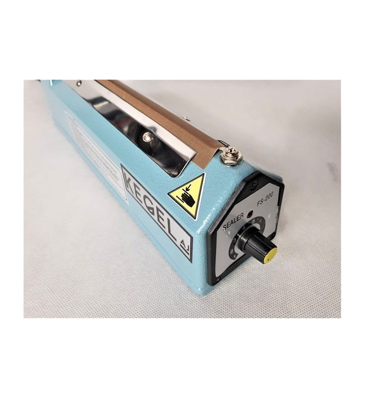 Ręczna zgrzewarka impulsowa z regulatorem czasu zgrzewania.