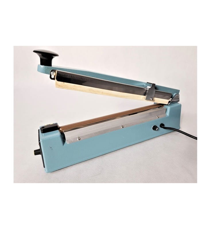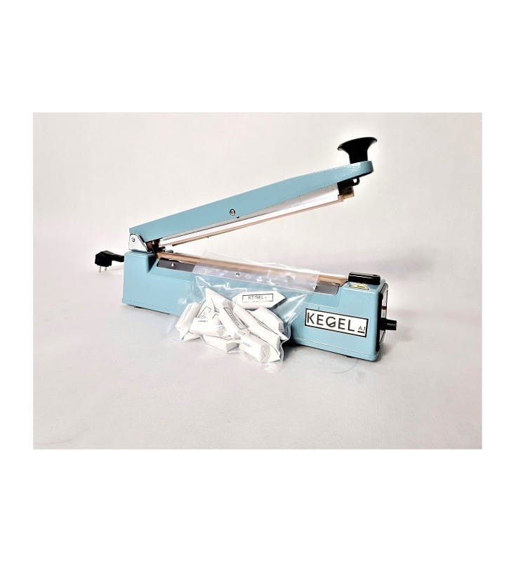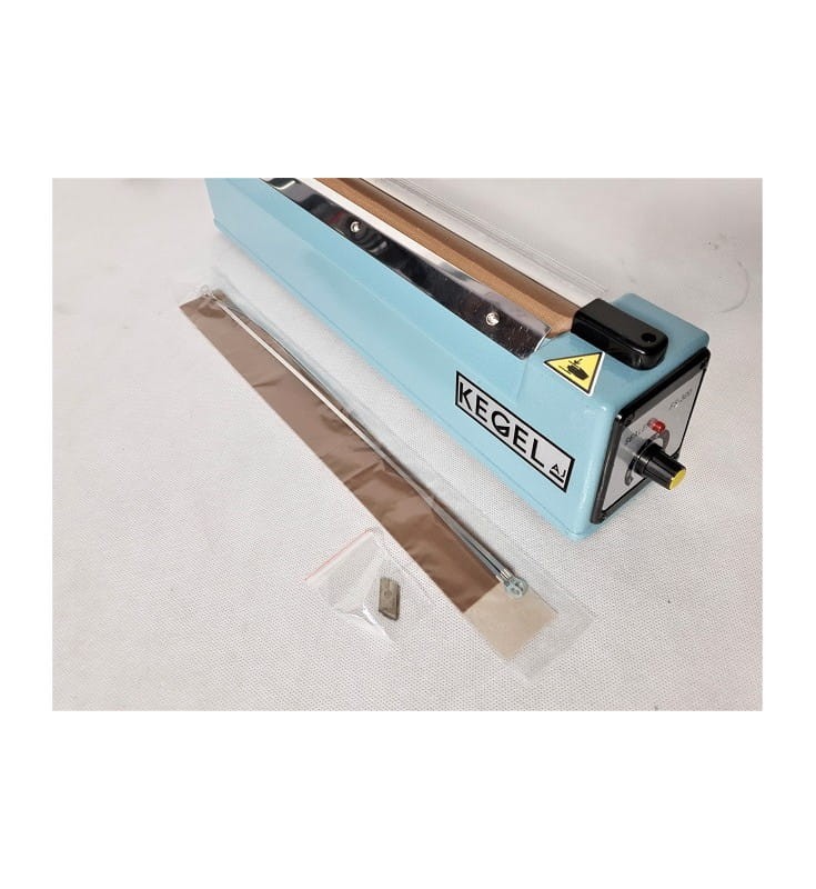Ręczna zgrzewarka impulsowa z regulatorem czasu zgrzewania.